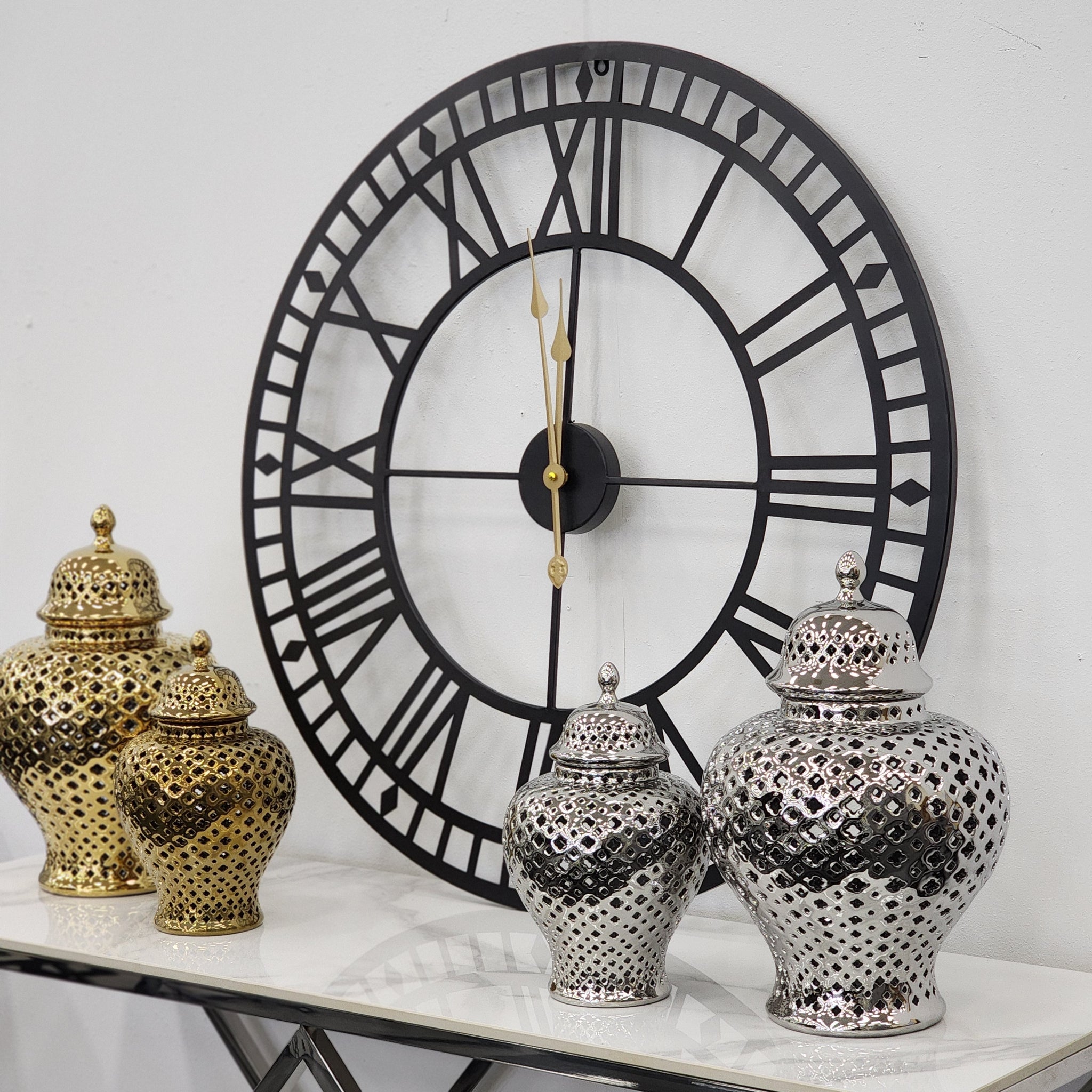 The Plain Metal Wall Clock has a diameter of 80cm, making it a noticeable and functional piece that can easily be viewed from a distance. The large size of the clock adds a bold statement to any wall it adorns.